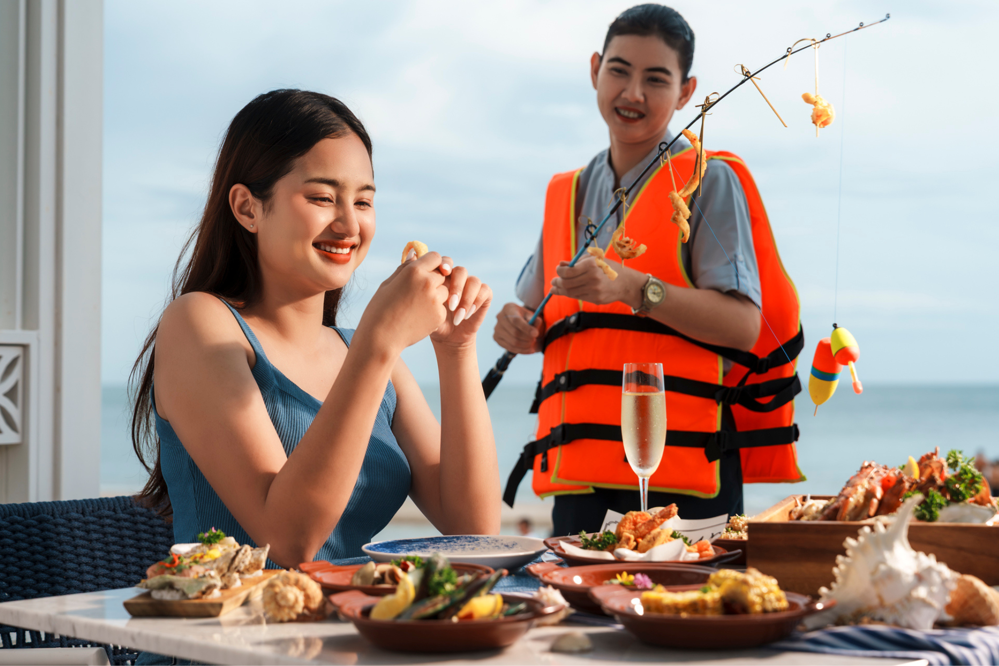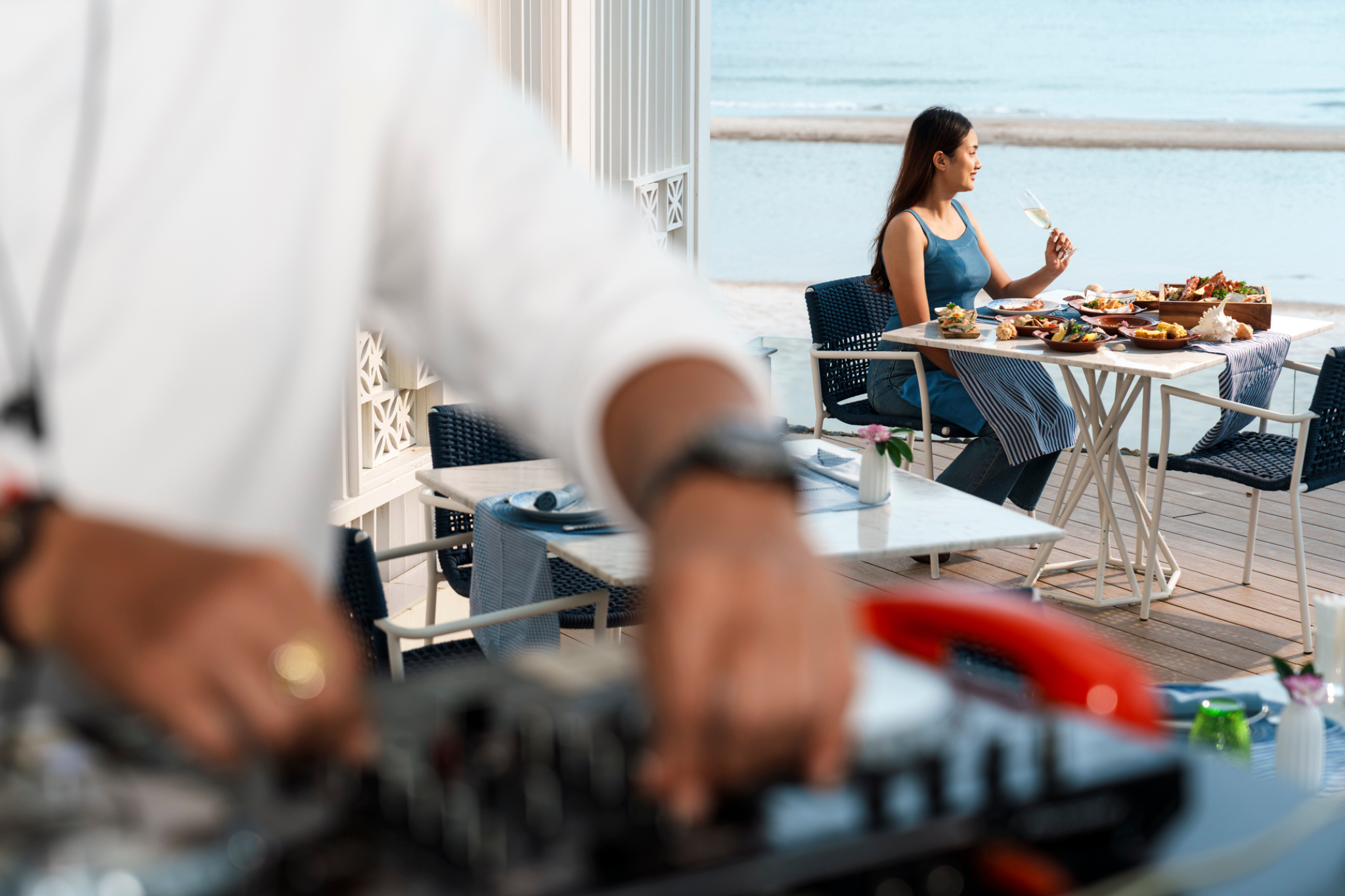 All this, while grooving to upbeat tunes from our live DJ—setting the perfect mood for an unforgettable evening by the sea.