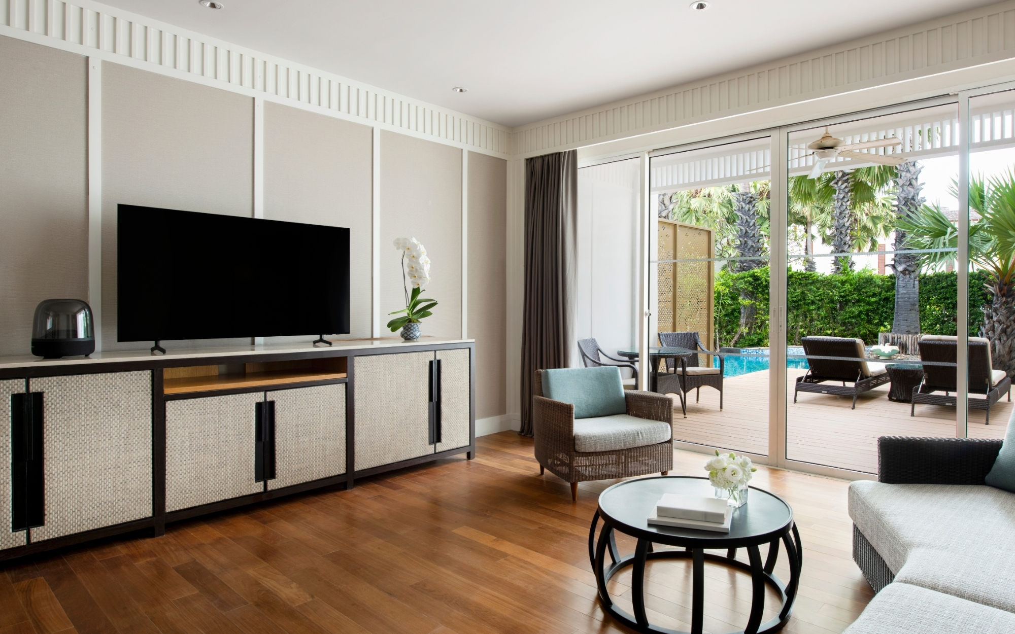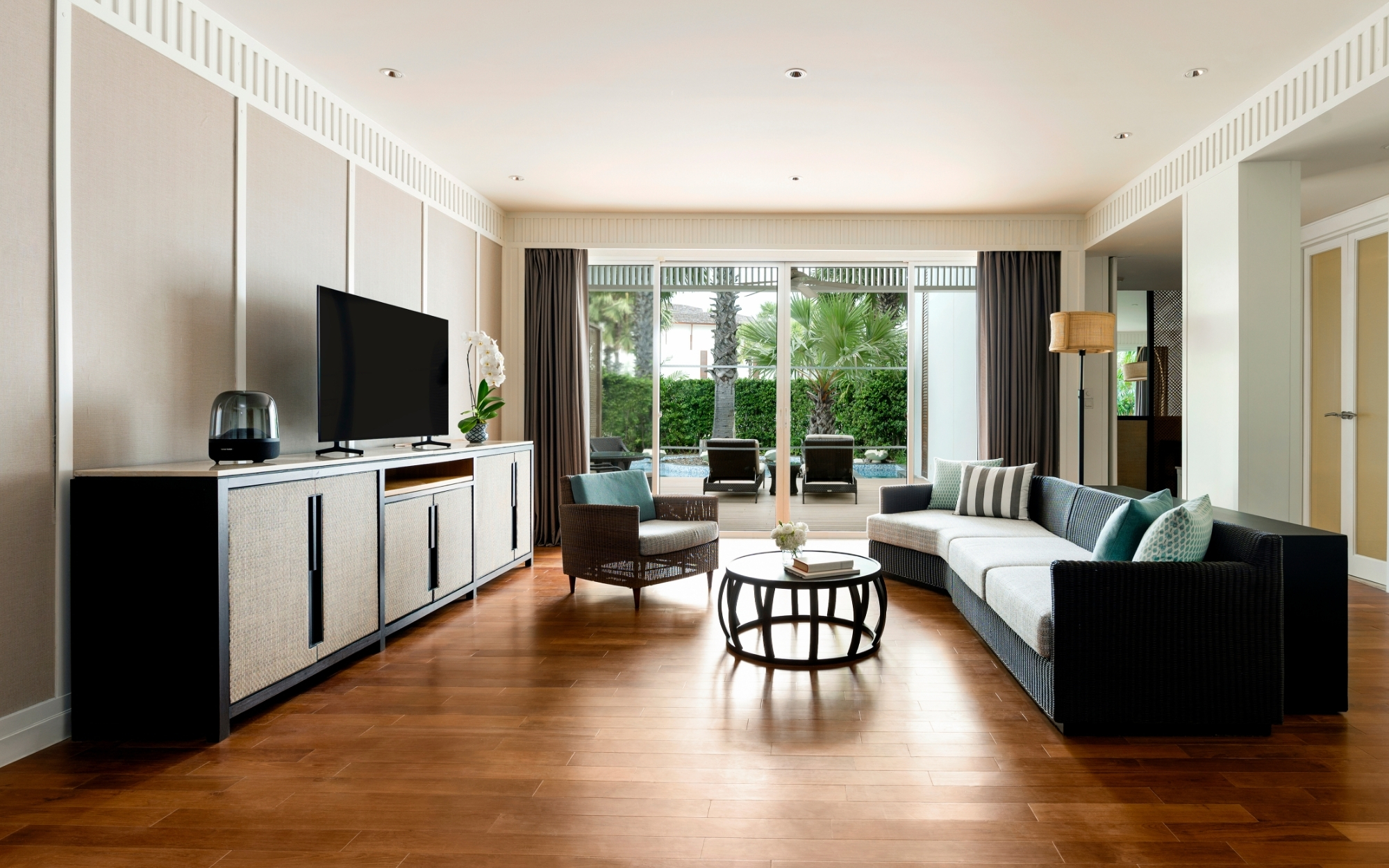 ห้องสวีทกว้างขวางได้รับแรงบันดาลใจจากพระราชวังฤดูร้อนของพระบาทสมเด็จพระมงกุฎเกล้าเจ้าอยู่หัว มีวิวมหาสมุทรบางส่วนและสิทธิประโยชน์ของสโมสร